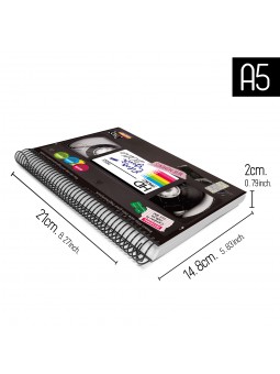 Cuaderno con portada con diseño de una cinta de VHS con las...