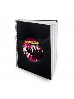 Cuaderno hecho con discos de vinilo, diseño Sex Pistols, hojas...
