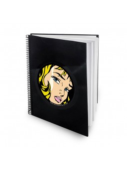 Cuaderno hecho con discos de vinilo, diseño Chica Comic, hojas...