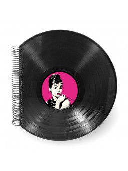 Cuaderno XL hecho con discos de vinilo, diseño Audrey Hepburn,...