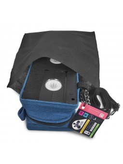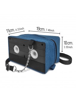 Bolso bandolera de cinta VHS y asa larga regulable.