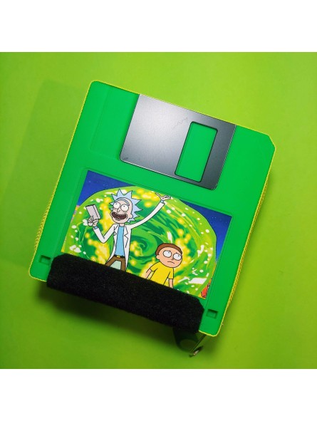 Monedero de disquete de color diseño Rick y Morty, color de cremallera según elección.