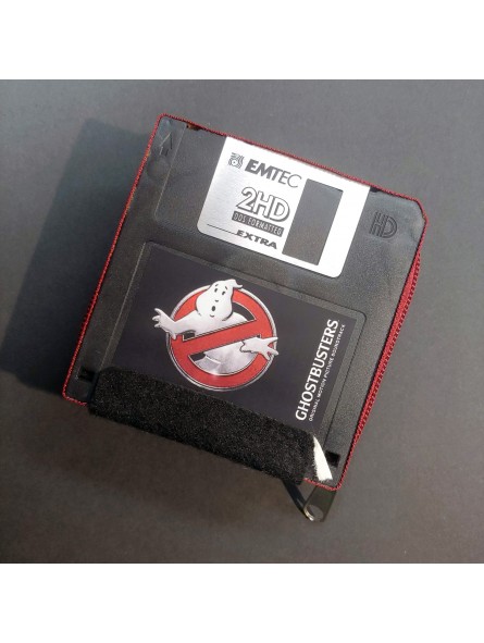 Monedero de disquete negro diseño Ghostbuster, color de cremallera granate.