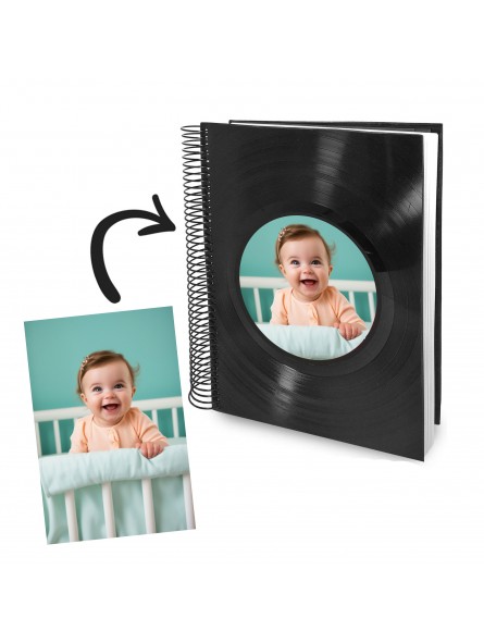 Agenda anual 2026 hecha con discos de vinilo LP, encuadernada...