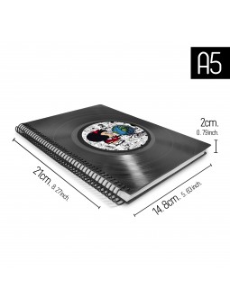 Agenda anual 2026 hecha con discos de vinilo LP, encuadernada con espiral, página día (Sábado y Domingo en páginas independientes) ideal para emprendedores y autónomos.