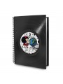 • FABRICACIÓN: Esta agenda anual esta hecha de forma artesanal, reciclando los antiguos discos de vinilo LP de 12", los discos están cortados en forma rectangular, para así darle la forma a la portada y la contraportada de la agenda. La encuadernación es de anillado con espiral metálico que le da un toque más casual, en su interior, contiene información, hoja de datos, calendarios...