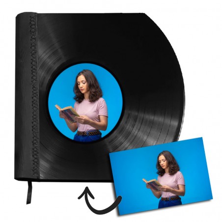 Cuaderno hecho con discos de vinilo con solapa, diseño...
