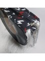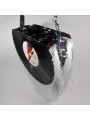 FABRICACIÓN: Este bolso esta hecho de forma artesanal, reciclando los antiguos discos de vinilo de 10", los discos están perforados y cosidos a mano a la tela elegida por todo su contorno, en la parte superior tenemos la cremallera, en su interior tiene solo un compartimento principal totalmente reforzado y forrado con tela negra, la asa esta hecha con cinta de nylon forrada con la tela elegida y parte de cadena metalizada con mosquetones para quitar y poner. Terminamos el producto con 2 líneas de flecos en la zona inferior a juego para darle movimiento y un estilo único. Este producto está diseñado, creado y fabricado en Europa, Made in Spain!