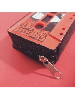 • PRODUCTO: Cartera / monedero / tarjetero hecho con una cinta de cassette original de color con diseño que simula las pegatinas tradicionales de los tiempos, pegadas en ambas partes del cassette, cremallera de color negra.