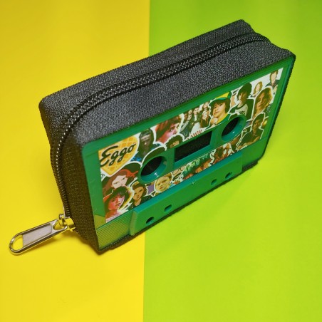 • PRODUCTO: Cartera / monedero / tarjetero hecho con una cinta de cassette original de color con diseño que simula las pegatinas tradicionales de los tiempos, pegadas en ambas partes del cassette, cremallera de color negra.