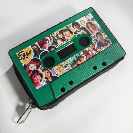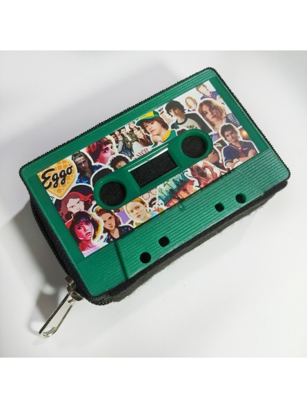 Monedero de cassette color Verde (verde petróleo) diseño Eggo Collage de Stranger Things, color de cremallera negra