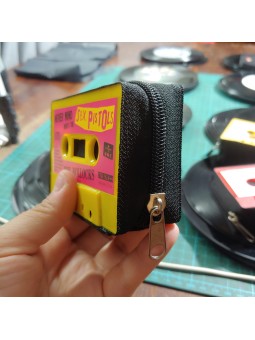 • PRODUCTO: Cartera / monedero / tarjetero hecho con una cinta de cassette original de color con diseño que simula las pegatinas tradicionales de los tiempos, pegadas en ambas partes del cassette, cremallera de color negra.