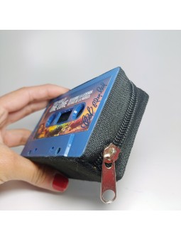 • PRODUCTO: Cartera / monedero / tarjetero hecho con una cinta de cassette original de color con diseño que simula las pegatinas tradicionales de los tiempos, pegadas en ambas partes del cassette, cremallera de color negra.