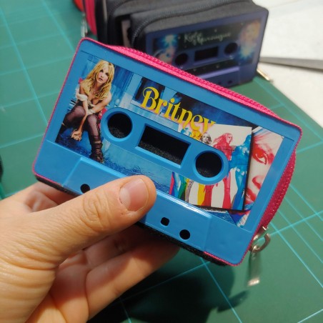 Monedero de cassette color azul diseño Britney Spears, color de cremallera fucsia.