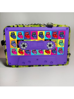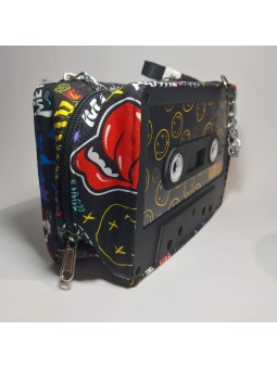 Bolso de cassette con cadena diseño Lengua estilo pop, tela de...
