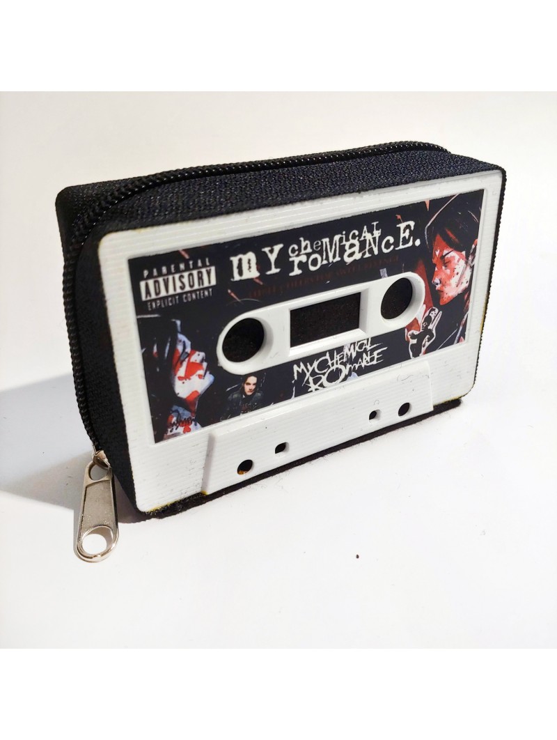 Monedero de cassette color blanco diseño My Chemical Romance, color de cremallera negro.