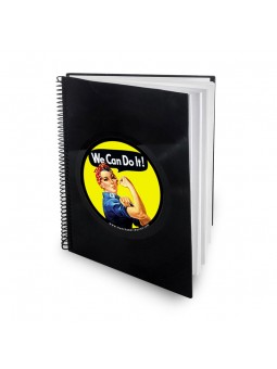Cuaderno hecho con discos de vinilo, diseño We can do it,...