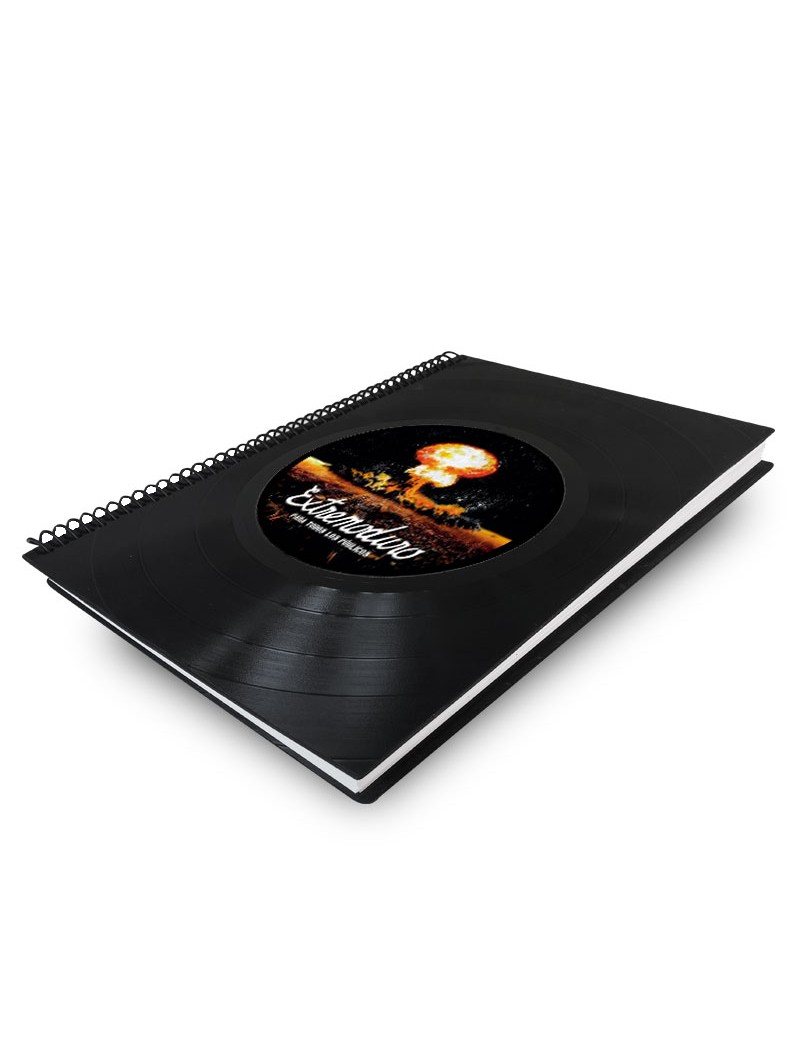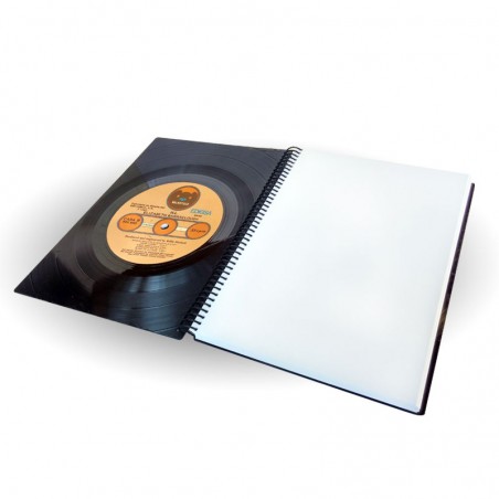 Cuaderno hecho con discos de vinilo, diseño Jack, hojas...