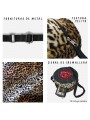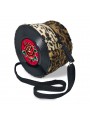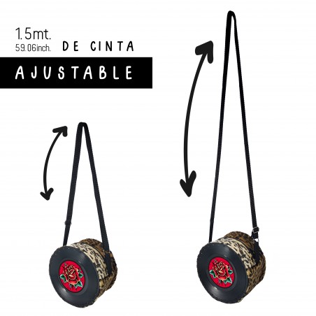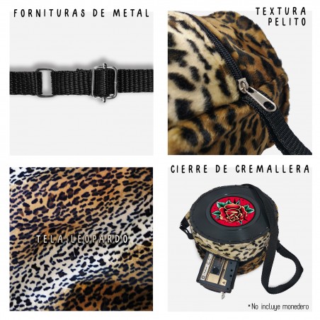 Bolso de disco de vinilo SINGLE con la imagen de Rosa Old School y tela de pelito de leopardo.