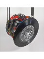 • FABRICACIÓN: Este bolso esta hecho de forma artesanal, reciclando los antiguos discos de vinilo de 7", los discos están perforados y cosidos a mano a la tela elegida por todo su contorno, en la parte superior tenemos la cremallera, en su interior tiene solo un compartimentos principal totalmente reforzado y forrado con tela negra, las asas están hechas con cinta de nylon negra cuya altura podrás regular a tu deseo. Este producto está diseñado, creado y fabricado en Europa, Made in Spain!