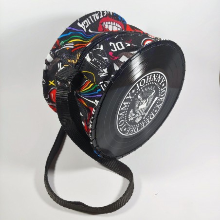 • PRODUCTO: Bolso hecho con dos discos de vinilo SINGLE reales, cierre de cremallera, asa larga con regulador de altura, tela y diseño según especificaciones.
