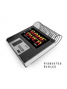 Libreta hecha con disquetes de 3.5", diseño game over, 100...