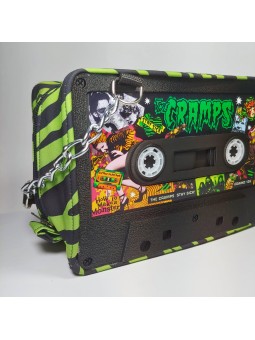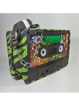 Bolso de cassette con cadena diseño The Cramps, tela cebra verde.
