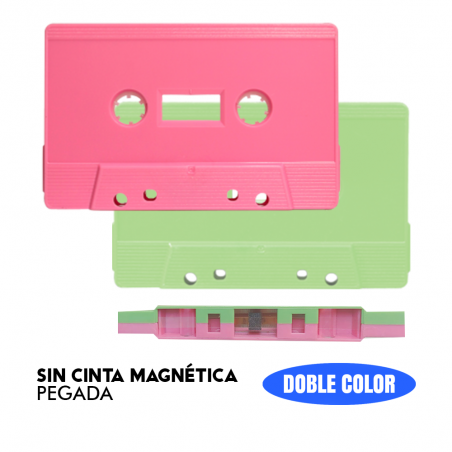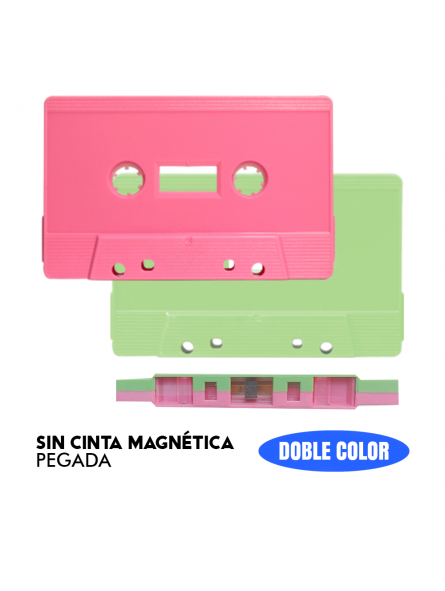 Cinta de cassette (K7) color doble rosa/menta, el ensamble de la misma no es por tornillos sino pegada. No tiene cinta magnética.