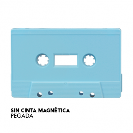 Cinta de cassette (K7) color azul claro, el ensamble de la misma no es por tornillos sino pegada. No tiene cinta magnética.