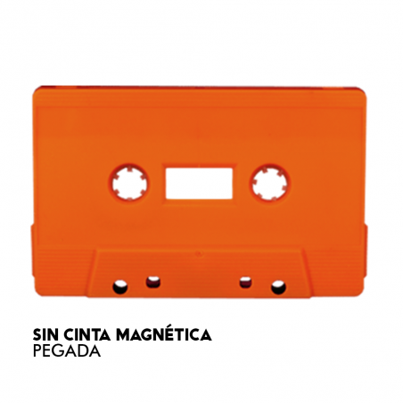 Cinta de cassette (K7) color naranja estilo calabaza, el ensamble de la misma no es por tornillos sino pegada. No tiene cinta magnética.