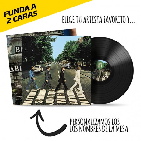 - En el disco de vinilo pondremos la foto que nos adjuntes y el número de la mesa elegida.