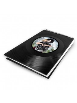 Libreta hecho con discos de vinilo, diseño David Bowie, hojas...