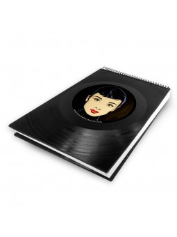 Libreta hecho con discos de vinilo, diseño Audrey Hepburn,...