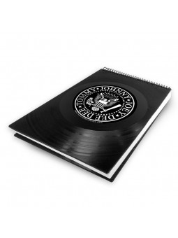 Libreta hecho con discos de vinilo, diseño Ramones, hojas...