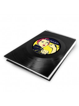 Libreta hecho con discos de vinilo, diseño We can do it, hojas...