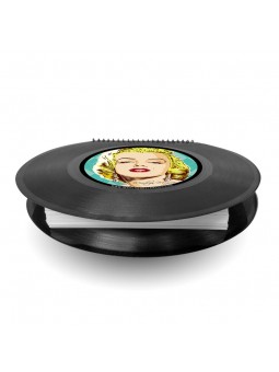 Libreta hecha con discos de vinilo single, diseño Marilyn...