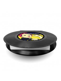 Libreta hecha con discos de vinilo single, diseño We can do...