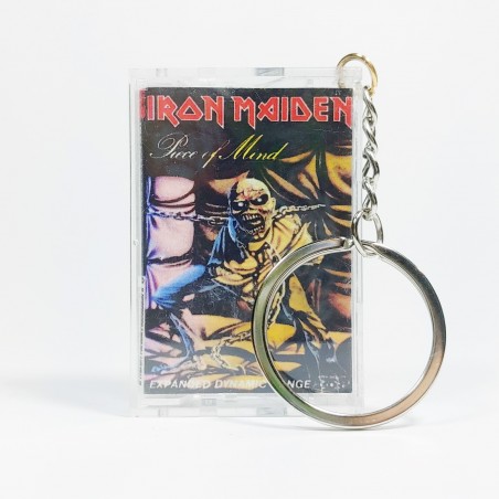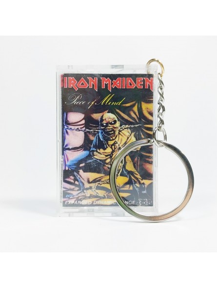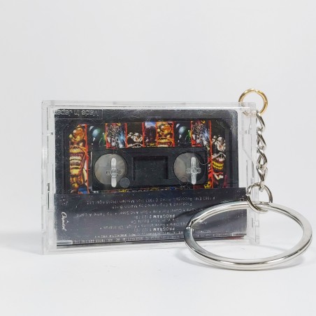 Llavero hecho con una cinta mini realizada en impresión 3D y una cajita original de microcassette, anilla de 3cm de diámetro.