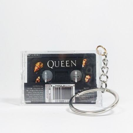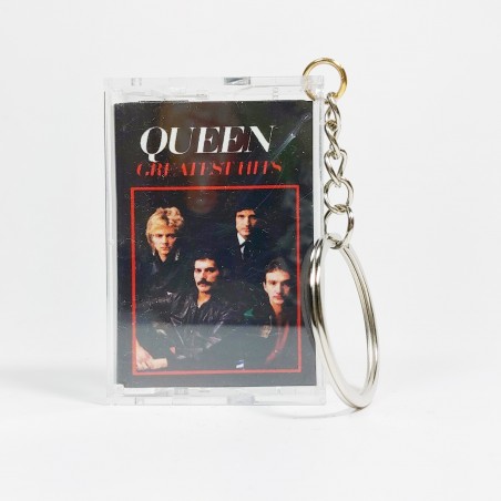 Llavero hecho con una cinta mini realizada en impresión 3D y una cajita original de microcassette, anilla de 3cm de diámetro.