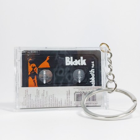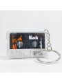 Llavero hecho con una cinta mini realizada en impresión 3D y una cajita original de microcassette, anilla de 3cm de diámetro.