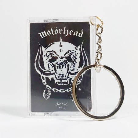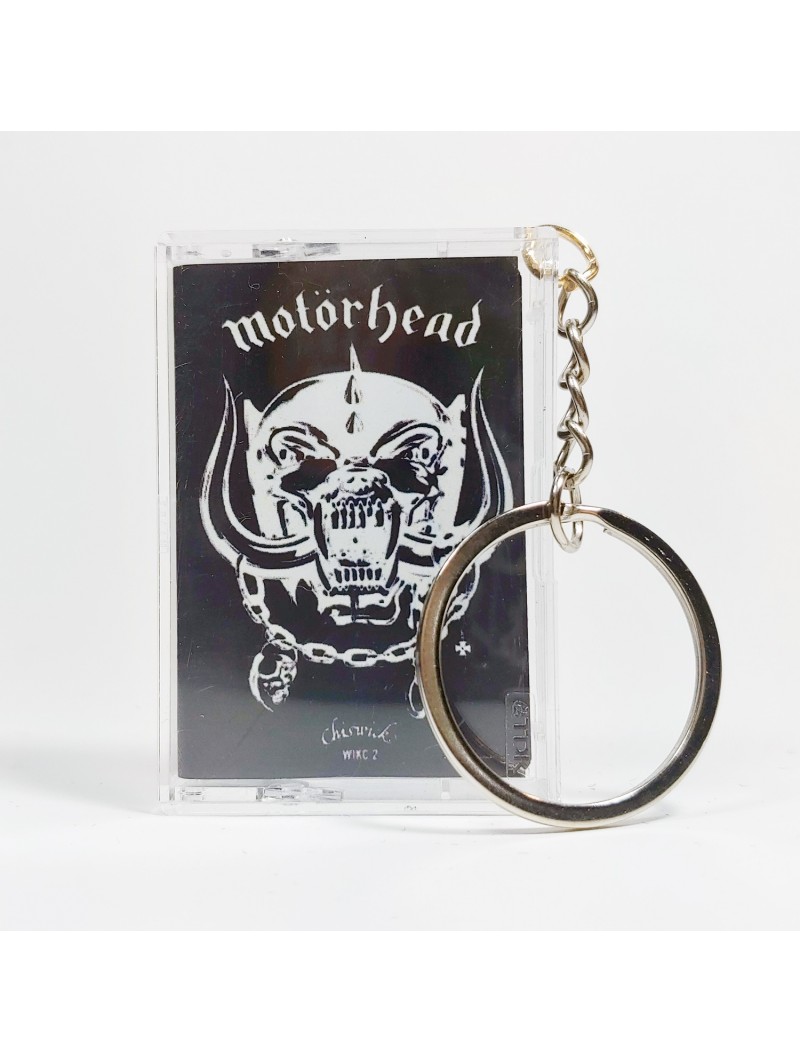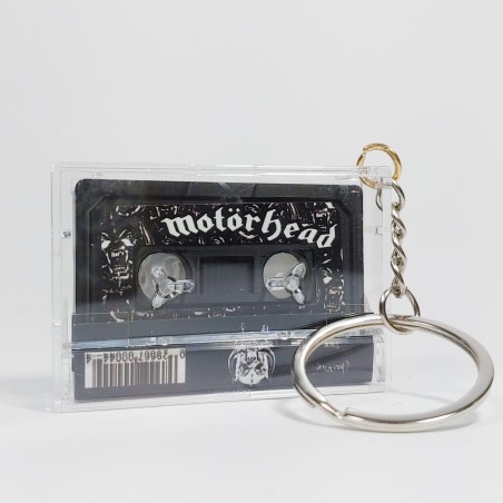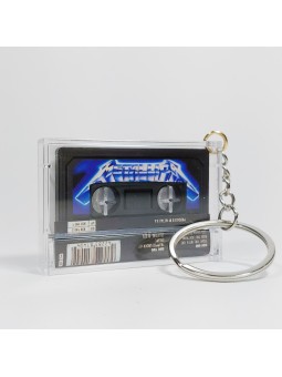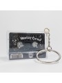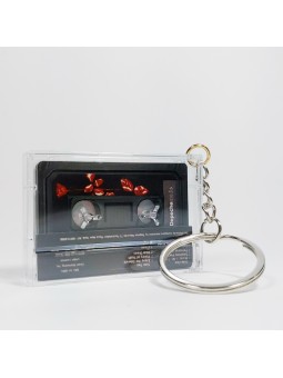 Llavero hecho con una cinta mini realizada en impresión 3D y una cajita original de microcassette, anilla de 3cm de diámetro.