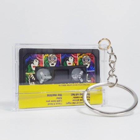 Llavero hecho con una cinta de microcassette original, anilla...