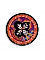 Pegatina de plástico cortada en forma redonda.