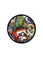 Pegatina de plástico cortada en forma redonda.