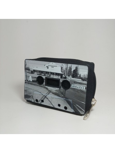 Monedero de cassette diseño único mostrado en imágenes. Tiene ligeros desperfectos estéticos que no influyen en su función principal.