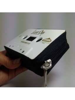 Monedero de cassette diseño único mostrado en imágenes. Tiene ligeros desperfectos estéticos que no influyen en su función principal.