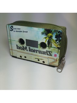 Monedero de cassette diseño único mostrado en imágenes. Tiene ligeros desperfectos estéticos que no influyen en su función principal.